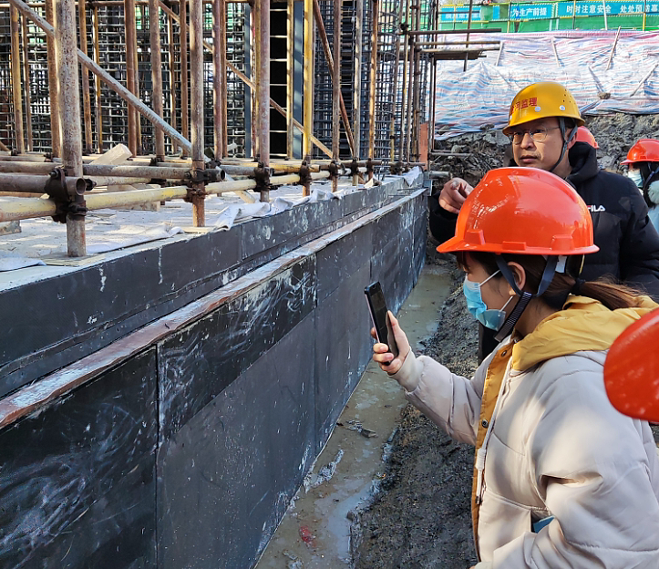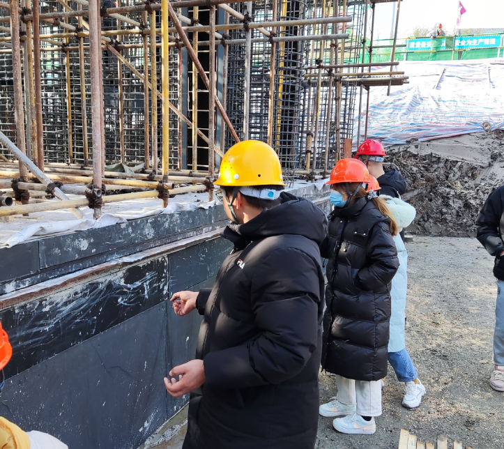 公司相關負責同志講解了該工程的設計要點,并結合工程施工現場實物對基坑支護、止水連接、鋼筋配置、冒水孔設置等相關注意事項作了介紹。